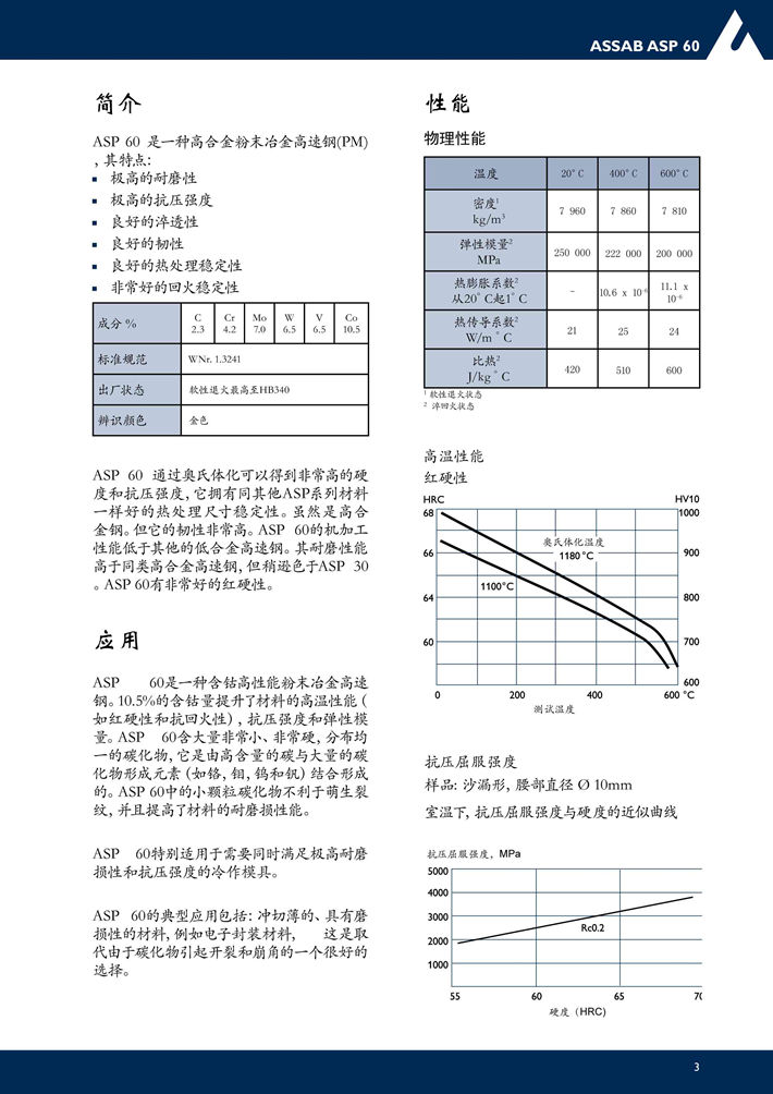 瑞典進口ASP60粉末高速鋼:用于刀具和冷加工的粉末高速鋼,極高的耐磨性和高溫時硬度。...