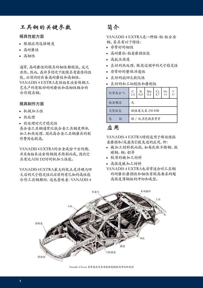 瑞典進口V4(VANADIS4 )粉末高速鋼:長壽命粉末冶金模具鋼,用于對粘著磨損和抗崩角性能有高要求的場合。...