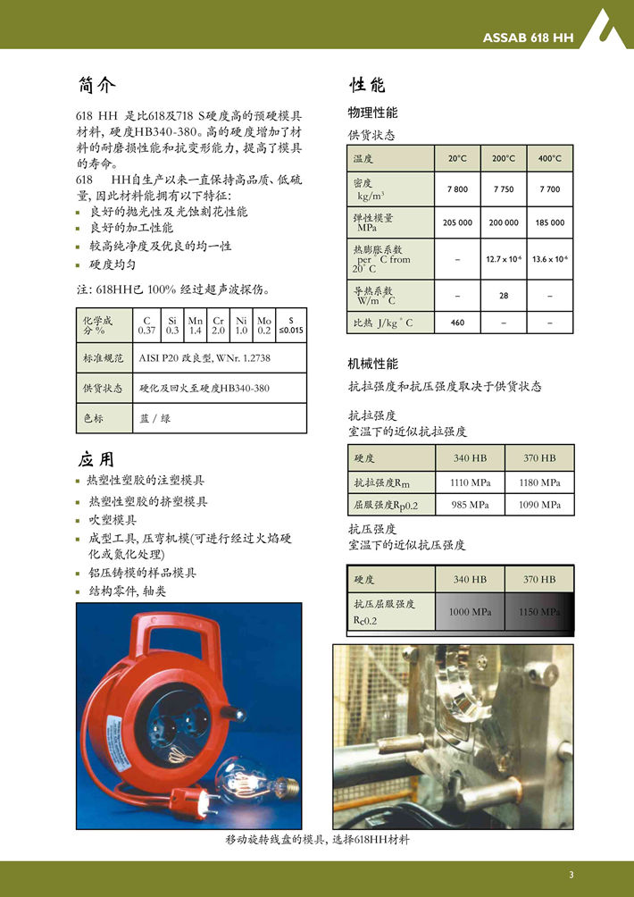 瑞典進口618HH塑膠模具鋼:預硬塑膠模具鋼,具有優良的拋光性能和機加工性能。...