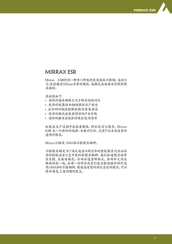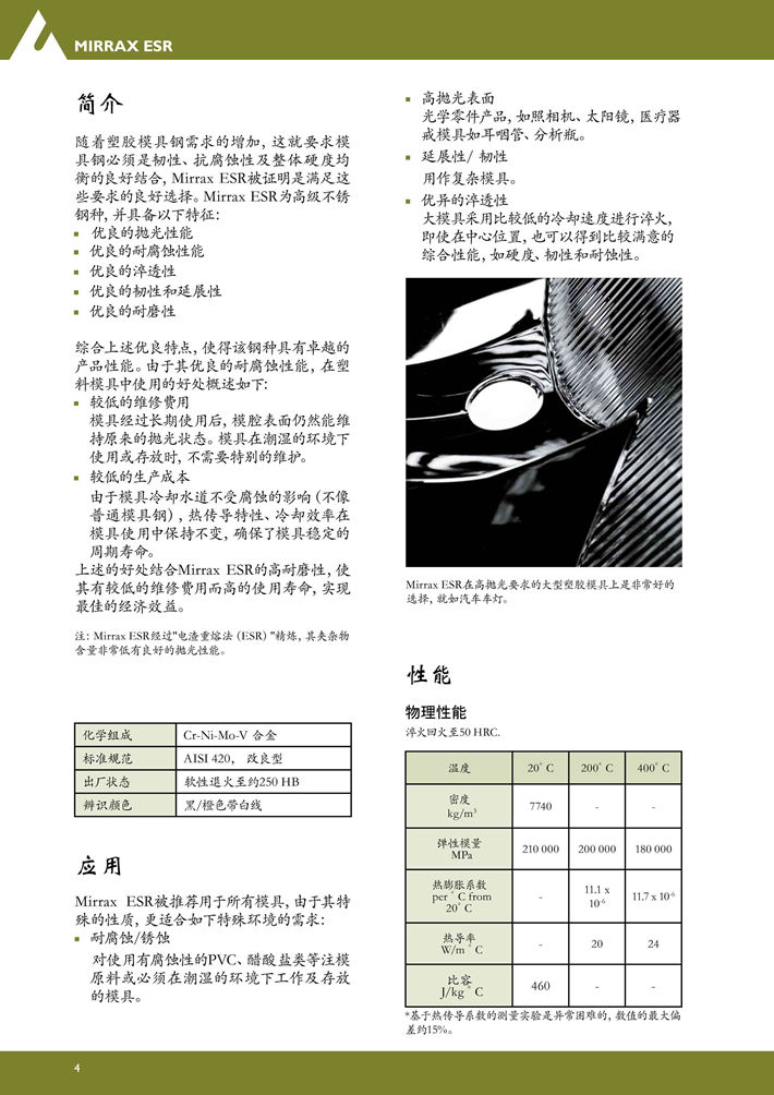瑞典進口MIRRAX ESR塑膠模具鋼:兼具韌性,抗腐蝕性,在大截面模塊中獲得均勻硬度和優良的拋光性能...