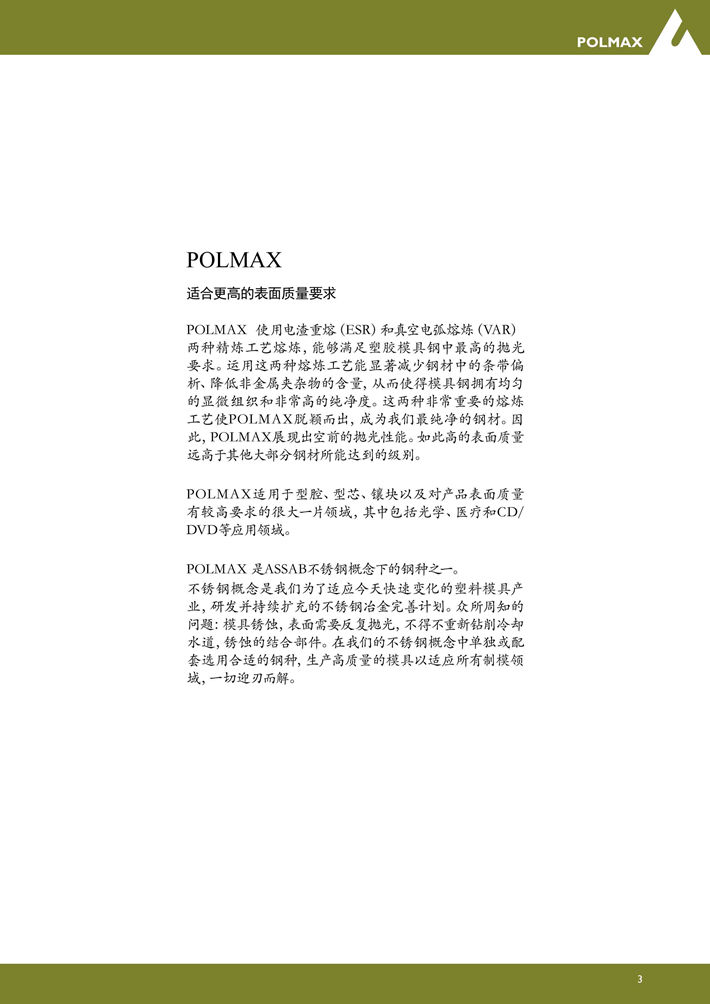 瑞典進口POLMAX塑膠模具鋼:出色的拋光性能,優良的抗腐蝕性和耐磨性,優良的機加工性能...